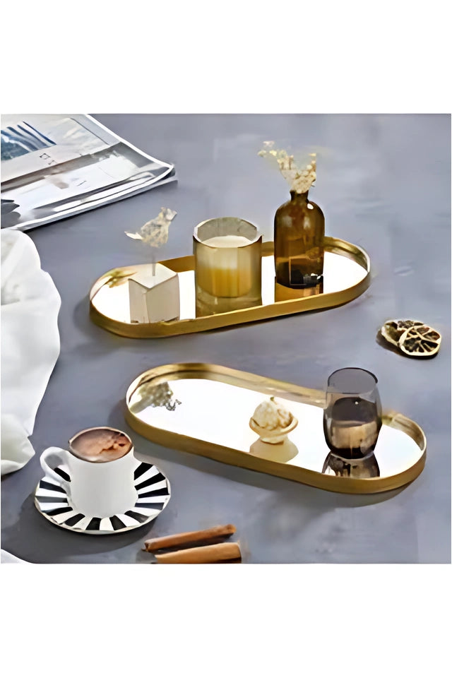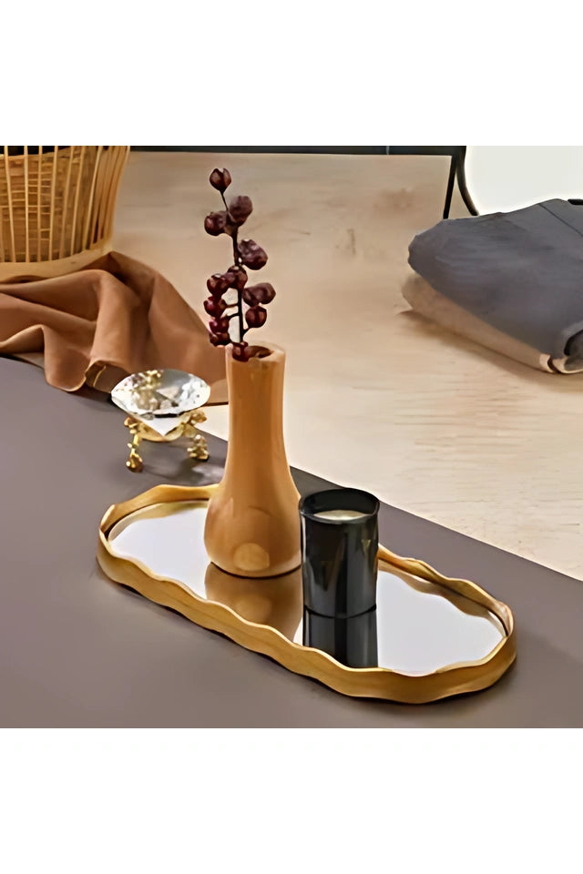Tabağı Aynalı- Altın Renkli Metal - 30x12.5x1.5cm