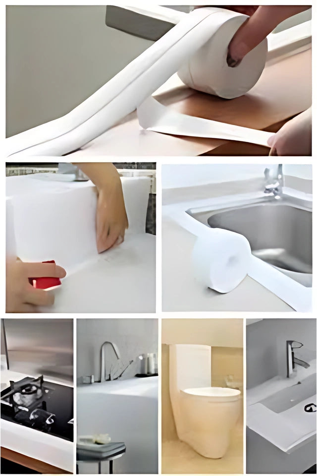 - Süper güçlü yapıştırıcı özelliği sayesinde, su sızdırmazlık bantı ile lavabo, küvet ve duş kenarlarını güvenle sabitleyin